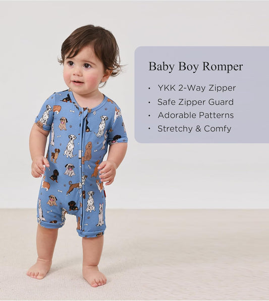 Baby Boys Bamboo Viscose Short Sleeve Romper Soft Comfy Infant Summer Jumpsuit