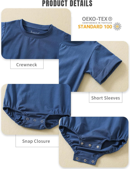 Jimonda Baby Bubble Romper Boy Girl Solid Color T-Shirt Outfits Short Sleeve Bodysuit Organic Cotton 2Pcs