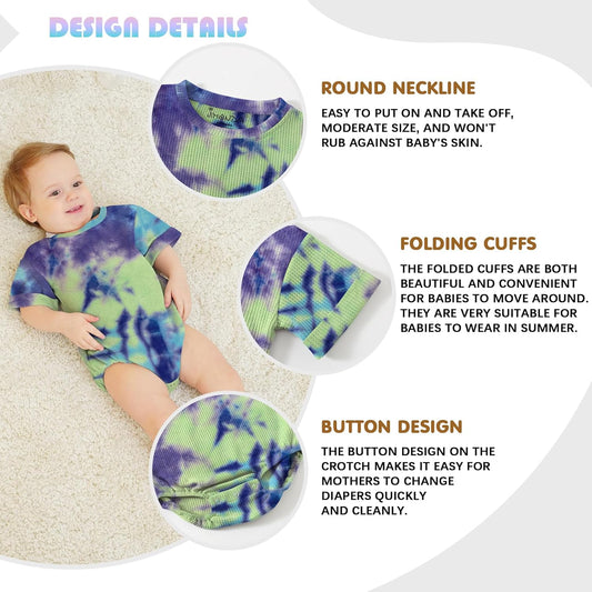 Jimonda Baby Bodysuit Newborn Tie Dye Clothes Infant Waffle One Piece Romper Baby Boys Girls Short Sleeve Jumpsuit Outfits