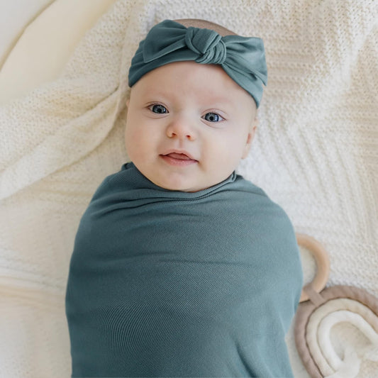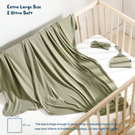 GRSSDER Newborn Swaddle Blanket, Ultra Soft Jersey Receiving Blanket with Matching Headband and Beanie Set, Stretchy Baby Swaddle 47×47", Extra Large Nursery Swaddles Wrap for Girls and Boys