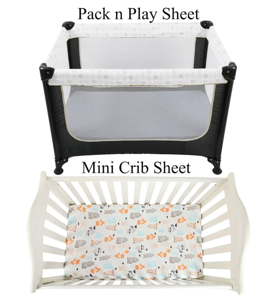 Pack n Play Sheet Stretchy Fitted Portable Mini Crib Sheets Set 3 Pack,Playard Sheets Convertible Playard Mattress Cover,Ultra Soft Jersey Material,Elephant Tiger,Fox & Grey