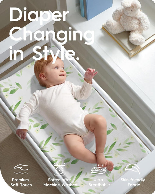 Changing Pad Cover for Girls Boys, TotBasic Premium Soft Boho Changing Table Covers, Stretchy Jersey Changing Table Sheets - Fits All Standard Changing Tables - 2 Pack (Sage Green&Botanical Leaf)