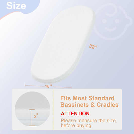 NeoBorn Baby Bassinet Mattress Pad, 32" x 18" Dual Sided Comfort Gel Memory Foam Mattress with Removable Breathable Soft Tencel Cover Fit for RONBEI/Ingenuity/Cuddor Baby Bassinet