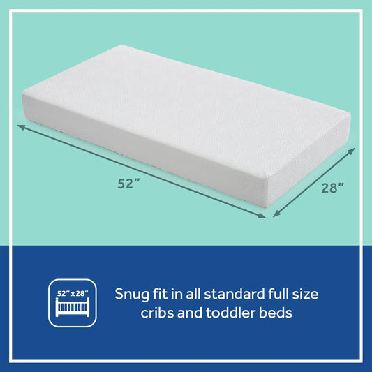 Crib Mattress, Dual-Sided Breathable Baby and Toddler Memory Foam Mattress with Removable and Washable Cover, 100% Knitted Fabric, Fits Standard Cribs and Toddler Beds, 52" x 28" x 5"
