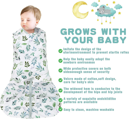Newborn Sleep Sack Baby Swaddle,Swaddle me 3-6 Month,3-Way Adjustable Wearable Blanket,100% Rayon Cotton Swaddling Sleeping Bag,TOG 0.5 (Leaf, 3-6 Months)