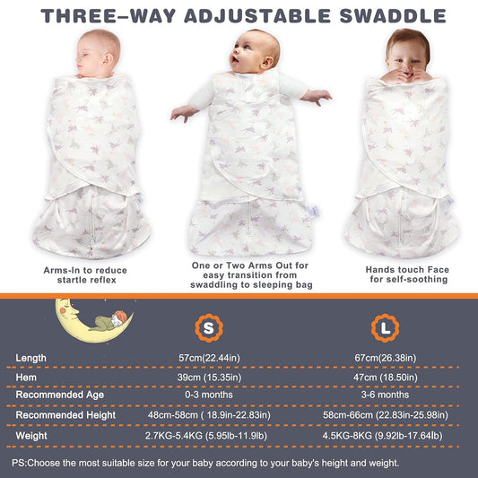 Swaddle-Blanket Baby Girl & Boy Swaddles Newborn Infant Transition 100% Cotton Wrap Blankets, 3-Way Adjustable Wearable Blanket, TOG 1.0 (Little Fairy 0-3 momth)