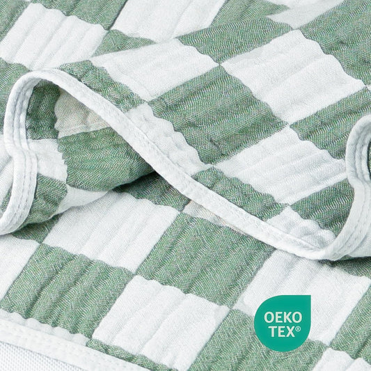 Muslin Baby Blanket Unisex Sage Green Checkerboard Toddler Blanket for Bed, 70% Cotton and 30% Rayon Breathable Swaddle Blankets for Newborn Infant 43 x 43 Inches