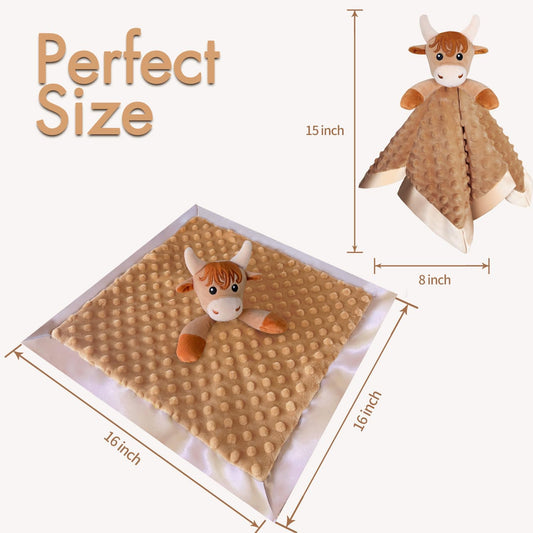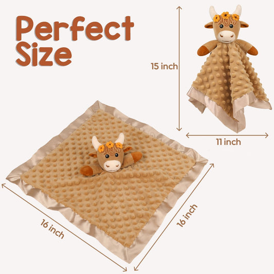 Loveys for Babies, Soft Baby Security Blanket Lovies for Babies, Stuffed Animals Blankie for Newborn Infant with Baby Snuggle Toy, Gilrs Gifts Highland Cow Security Blanket 16 Inch
