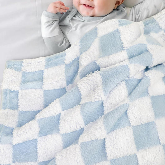 HOMRITAR Checkered Baby Blanket for Boys Girls Warm Cozy Reversible Checkerboard Toddler Blankets, Fluffy Fuzzy Plush Lightweight Bed Blanket with Chessboard Grid Design 350GSM Baby Blue 30 x 40 Inch