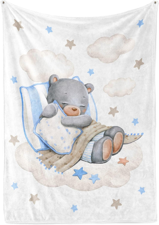 UNIQUE Little Bear Ultra Soft Fleece Baby Blanket 30x40in, Cute Sleeping Bear Baby Blanket, Boy