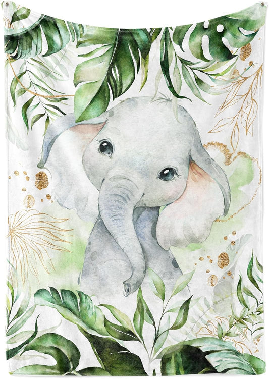 UNIQUE Safari Ultra Soft Fleece Baby Blanket 30x40in, Cute Elephant Baby Blanket, Gender Neutral