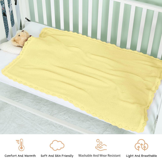 100% Cotton Baby Blanket Knit Soft Warm Lace Toddler Newborn Nursery Blanket, 30 x 40 Inches, Lemon Yellow