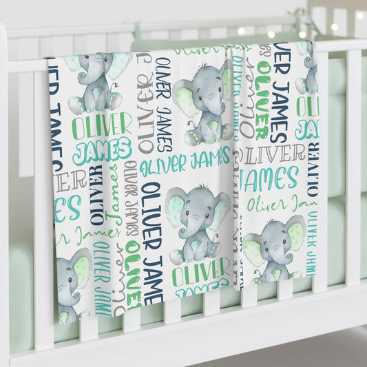 Personalized Elephant Swaddle Blanket with Name - Custom Baby Blanket for Boys & Toddlers - Kids & Newborn
