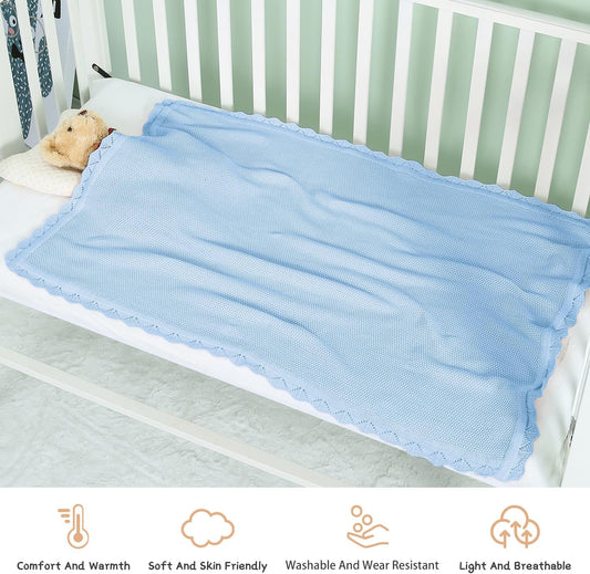 100% Cotton Baby Blanket Knit Lace Soft Warm Toddler Blanket,30 x 40 Inches,Sky Blue