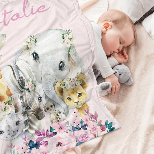 Personalized Baby Blanket with Name Custom Animals Blanket for Infant Toddler Newborn Customized for Boy Girl Birthday Christmas