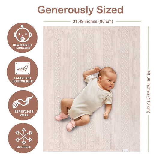 Organic Cotton Baby Blanket - 31.5 x 43.3 Inches, Soft Knitted Crib Blanket for Boys & Girls, Breathable Design (Beige)
