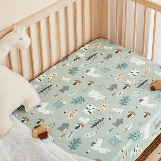 Pack and Play Sheets Fitted, Soft Green+Giraff, Breathable and Cozy, Hypoallergenic, 2 Pack for Boys and Girls