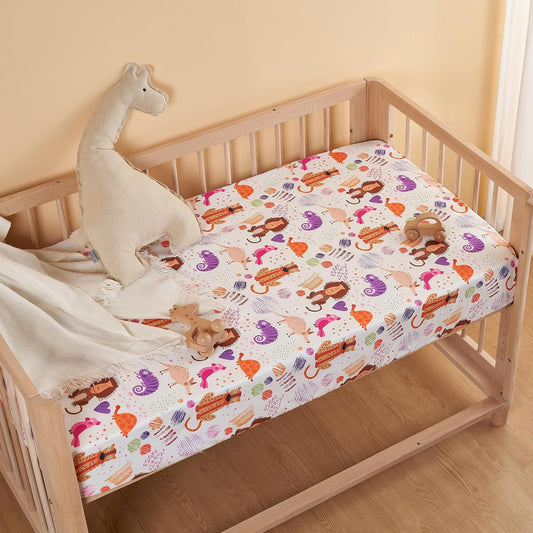 TILLYOU Baby Crib Sheets for Boys Girls, Super Soft Toddler Bed Sheets, 2 Pack Sheets for Standard Crib Mattress 28x52in, Animal Graffiti