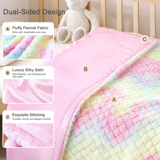Baby Blanket for Girls Tie Dye Rainbow Fleece Fluffy Fuzzy Blanket with Soft Luxury Silk Silky Backing for Toddler Nursery Travel Home Decor 30 x 40 Inch