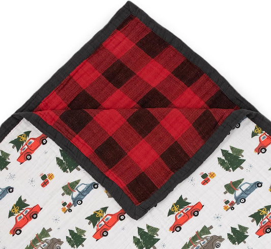Little Unicorn Premium Quilted Throw | Super Soft, Multi-Layered Muslin XL Blanket| Great for Kids & Families (Holiday Haul)