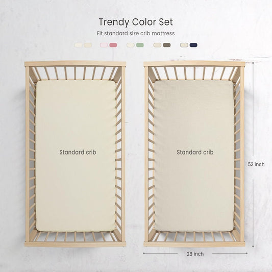 Baby Crib Sheets Boy Girl for Standard Crib Mattress - Beige Trees&Leaf, Breathable and Snug, Fits 28''x52''x9'' Extra Deep Pocket