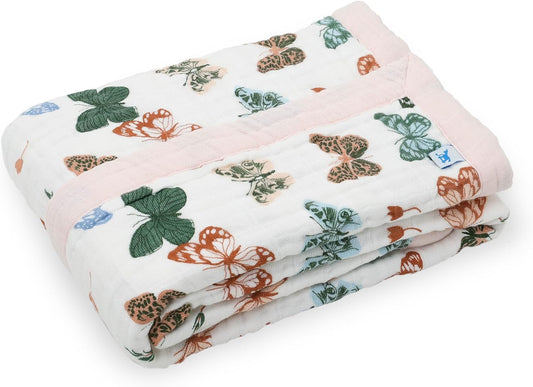 Little Unicorn Newborn Receiving Quilt | Ultra- Soft, Multi-Layered Muslin Fabric | Gift for Newborns & on-The-go (Butterflies)