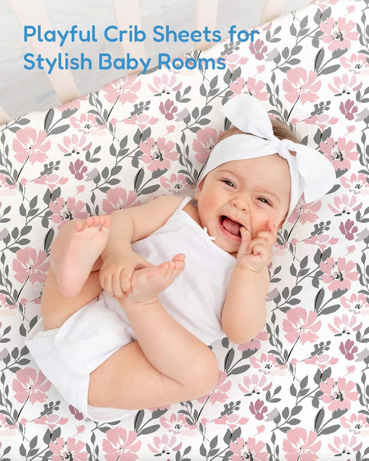 The Peanutshell 4-Pack Fitted Crib Sheet Set - Super Soft & Breathable Baby Girl Crib Sheets, Nursery Decor, Fit for Standard Mattress Cover- Floral