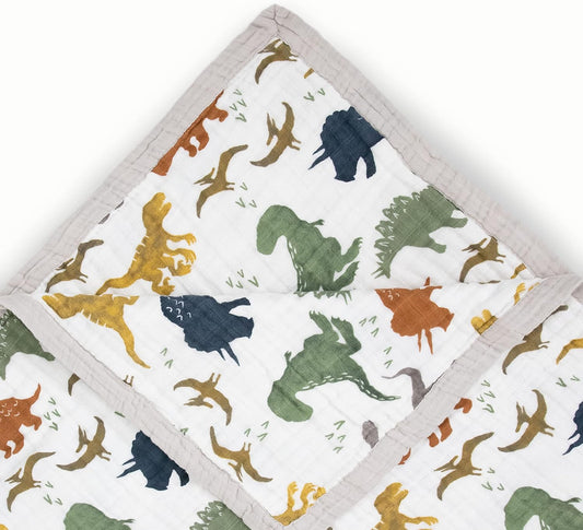 Little Unicorn Premium Quilted Throw | Super Soft, Multi-Layered Muslin XL Blanket| Great for Kids & Families (Dino Friends)