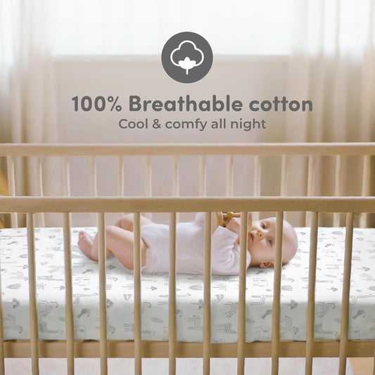 Sweety Fox 2-Pack Crib Sheets - Soft Jersey Cotton Fitted Sheets for Boys and Girls, Mini Crib Sheets, Toddler Bed Sheets (Savanna)