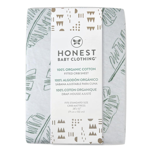 HonestBaby Unisex-Baby Fitted Crib Sheets Set Standard Mattress, 100% Organic Cotton Baby Boys, Girls, Neutral, 1 Pack - Jumbo Leaf Sage, One Size