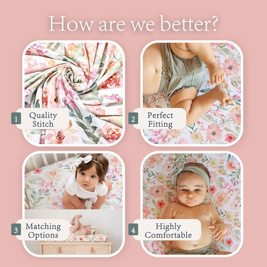 Baby Girls Crib Sheets | Floral Ultra-Soft Bedding for Crib Mattress and Toddler Beds - Blended Cotton Fitted Crib Sheet for Baby Girls Comfort and Elegance by Max&So