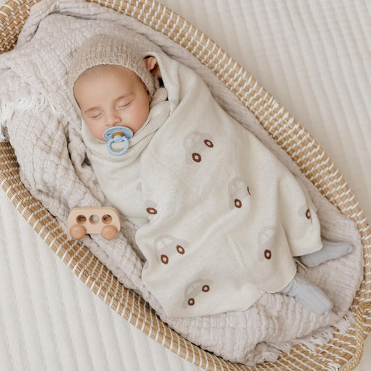 Knit Baby Swaddling Blanket - 100% Cotton Lightweight Soft Cozy Receiving Swaddle Crib Stroller Quilt Blanket for Shower Gift Registry for Newborns, Infants, Toddlers (Deer - Mocha)