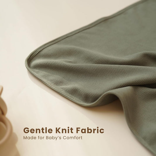 Konssy Knit Baby Blanket 2 Pack, Soft Ribbed Swaddle Receiving Blankets for Boys & Girls, Lightweight Cozy Swaddling Wrap for Newborns, Infants, & Toddlers, 33x42 Inch (Beige, Sage)