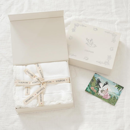 100% Organic Cotton Baby Blanket Knitted Softer Receiving Swaddle Warm Cozy Cuddle Crib Blanket for Newborns Infants Toddlers Boy and Girls White