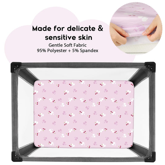 Yoofoss Pack and Play Sheets Fitted, Mini Crib Sheets 2-Pack for Pack N Play Mattress, Stretchy Playard Sheet, Soft and Breathable (Pink+Cherry)