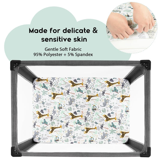 Yoofoss Pack and Play Sheets Fitted, Mini Crib Sheets 2-Pack for Pack N Play Mattress, Stretchy Playard Sheet, Soft and Breathable Green+Giraff