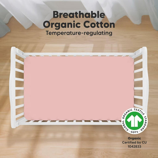 KeaBabies 2-Pack Organic Crib Sheets for Boys, Girls - 52x28 Fitted Crib Mattress Sheet Neutral, Breathable Jersey Cotton Cover for Baby Bed, Toddler Mattress, Soft & Cute Prints (Rose)
