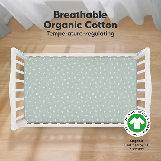 KeaBabies 2-Pack Organic Crib Sheets for Boys, Girls - 52x28 Fitted Crib Mattress Sheet Neutral, Breathable Jersey Cotton Cover for Baby Bed, Toddler Mattress, Soft & Cute Prints (Meadow)