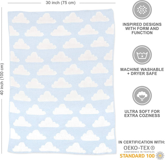 Living Textiles Blue Clouds Chenille Soft Baby Blanket Reversible Premium Cozy Fabric for Best Comfort - for Infant,Toddler,Newborn,Nursery,Boy,Unisex,Throw,Crib,Stroller,Gift, Blue Clouds 40x30