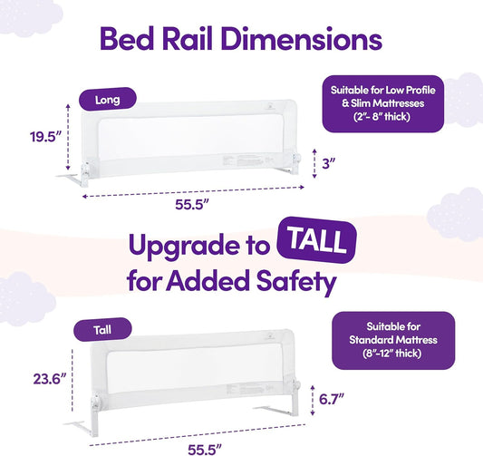 ComfyBumpy 2-Pack Bed Rail for Toddlers 55.5" L x 19.5" H | Toddler Bed Rails for Twin, Full, Queen & King Mattress Size | Swing Down Rail Guard | Mattress Side Rail for Kids | White