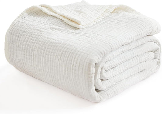 EMME Muslin Baby Blankets 100% Cotton 4-Layer Swaddle 40"x50" Lightweight Soft Breathable for Toddler, Infant, Newborn All Season Gauze Blanket, White