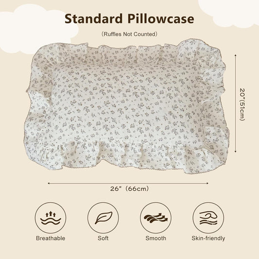 BuLuTu Cotton Muslin Kids Toddler Pillowcase Standard Size, Shabby Chic Galsang Flowers Print, Soft Travel Pillow Case Ruffle Edge Nursery Pillowcases, Boys Girls Bedding Decor, Machine Washable