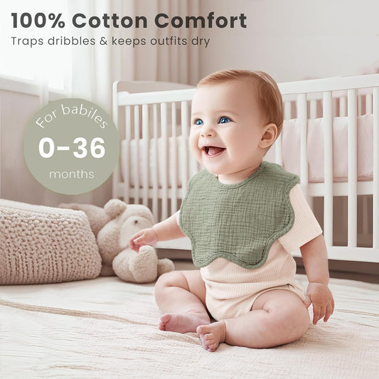 8-Pack Muslin Baby Bandana Drool Bibs – Soft & Absorbent 100% Cotton Teething and Drooling Essentials for Boys, Girls, Newborns & Toddlers