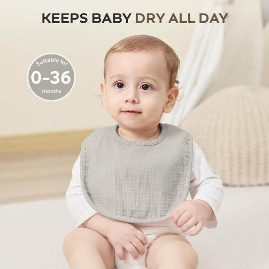 Konssy 8-Pack Muslin Baby Bibs, Absorbent Bandana Drool, 100% Cotton Unisex Baby Bibs for Teething and Drooling