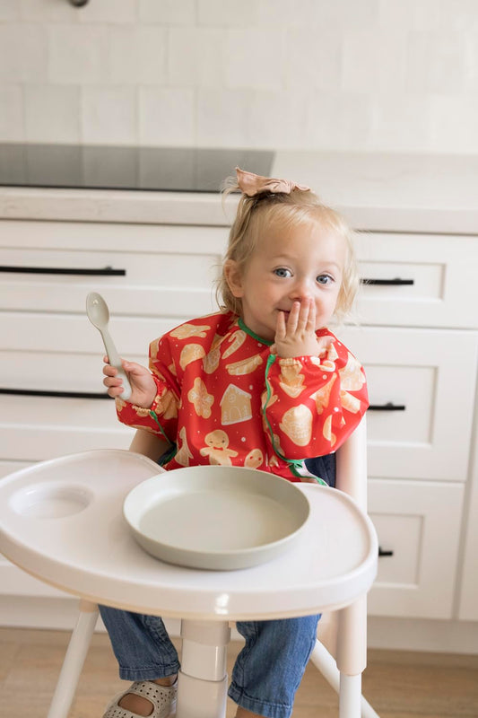 Tiny Twinkle Mess Proof Baby Bib,Waterproof Smock Baby Bib for Eating,Machine Washable Long Sleeve Bib,Baby Led Weaning,Toddler Bib Gingerbread, Small 6-24 Months