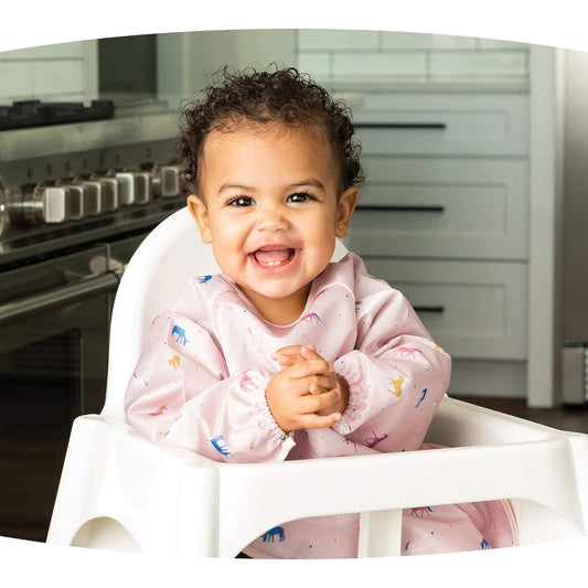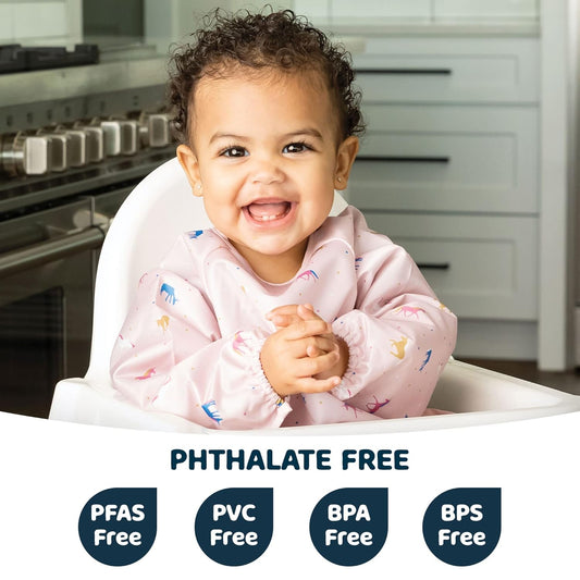 Tiny Twinkle Mess Proof Baby Bib,Waterproof Smock Baby Bib for Eating,Machine Washable Long Sleeve Bib,Baby Led Weaning,Toddler Bib,BLW Supplies(Unicorn Confetti, Small 6-24 Months)