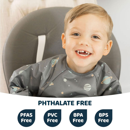 Tiny Twinkle Mess Proof Baby Bib,Waterproof Smock Baby Bib for Eating,Machine Washable Long Sleeve Bib,Baby Led Weaning,Toddler Bib,BLW Supplies(Space, Small 6-24 Months)