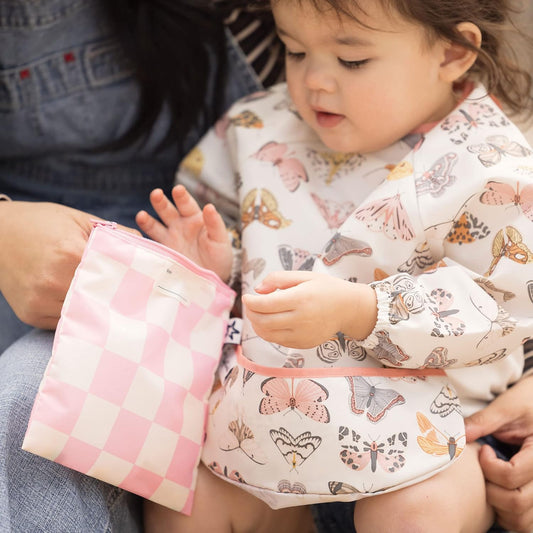 Tiny Twinkle Mess Proof Baby Bib,Waterproof Smock Baby Bib for Eating,Machine Washable Long Sleeve Bib,Baby Led Weaning,Toddler Bib,BLW Supplies(Flutter, Small 6-24 Months)