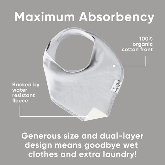 Woolino Merino Wool Baby Bibs - Highly Absorbent Bandana Bib with Cotton Outer Layer and Merino Wool Inner Layer - Pack of 2