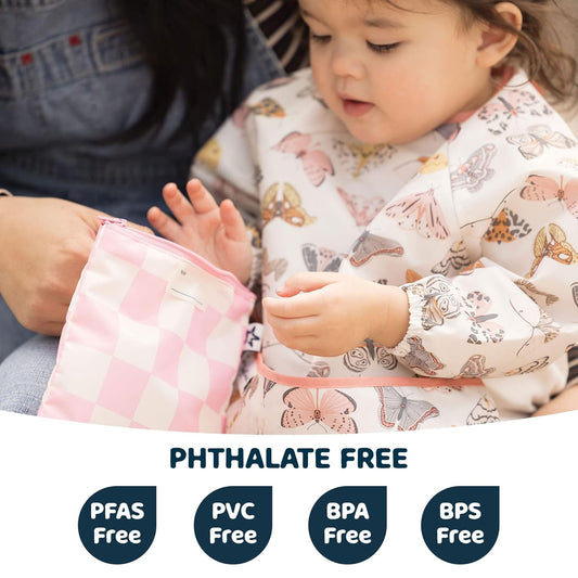 Tiny Twinkle Mess Proof Baby Bib,Waterproof Smock Baby Bib for Eating,Machine Washable Long Sleeve Bib,Baby Led Weaning,Toddler Bib,BLW Supplies(Flutter, Large 2-4 Years)